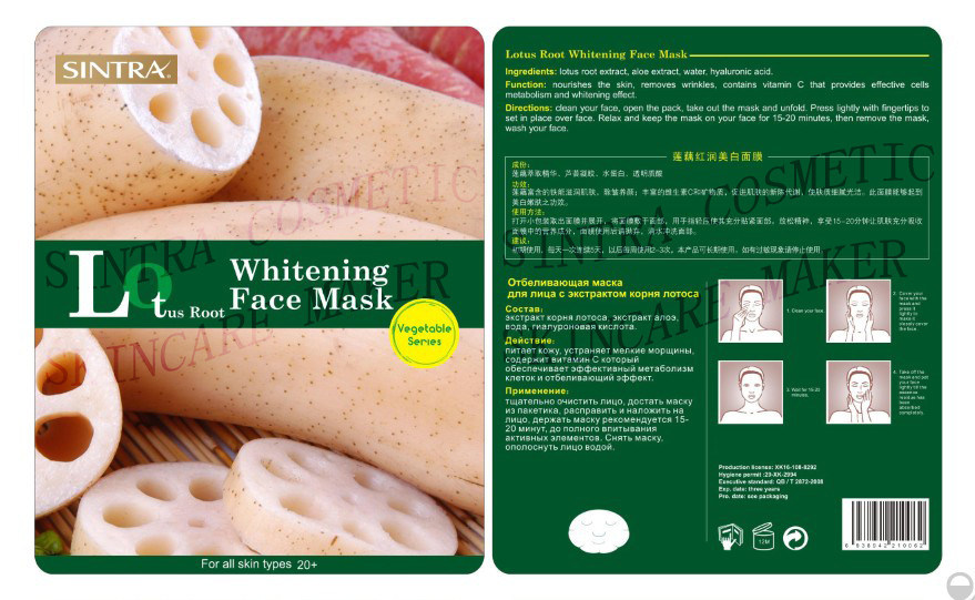 Lotus Root Skin Whitening Facial Mask Moisturizing / Botanical Face Mask SC-03