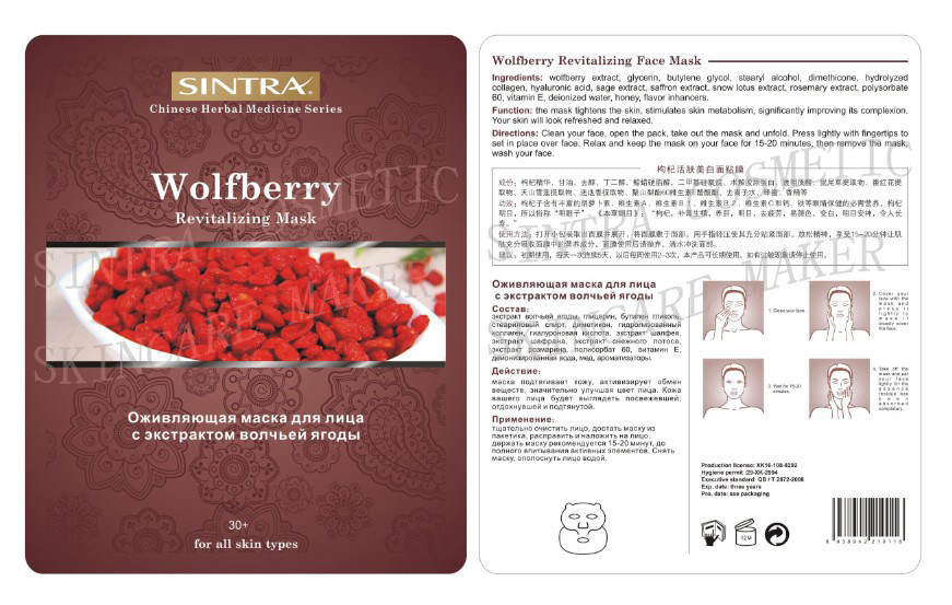 Befeuchtende Faser-Gesichtskräutermaske, Wolfberry Wiederbelebungs-Gesichtsmaske ZCY-04