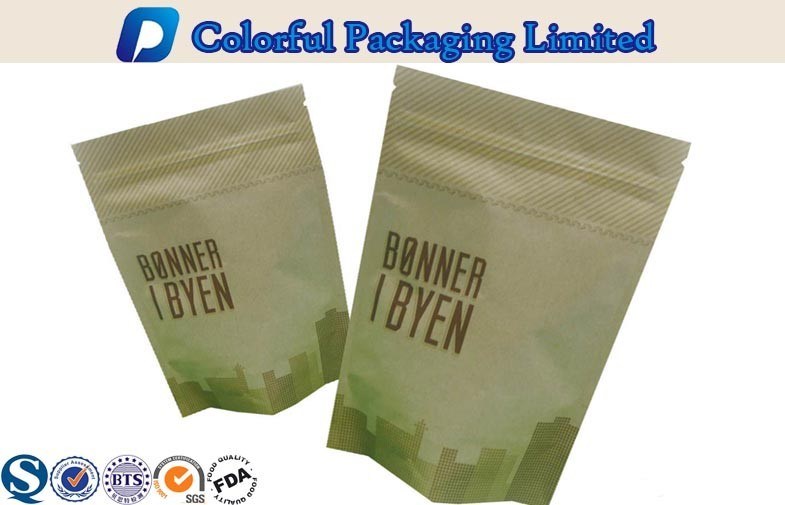 Συσκευάζοντας τσάντες τοπ της Kraft φερμουάρ καφέ εγγράφου με τη συνήθεια που τυπώνεται
