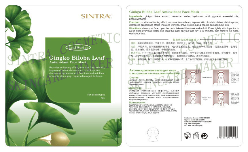 1. 名前: イチョウの Biloba の葉の酸化防止マスク