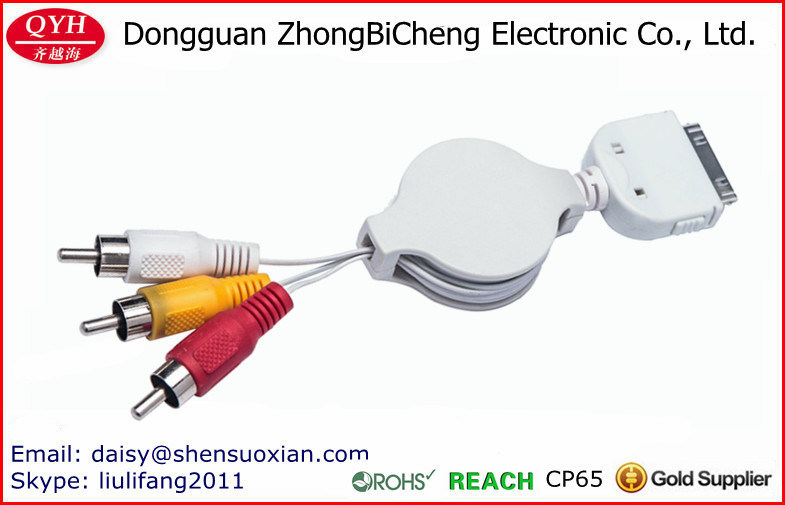 Para os dispositivos estereofónicos 30-Pin retrátil ao cabo do áudio 3rca