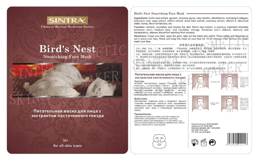 Hembra que hidrata la máscara facial, mascarilla de alimentación de la jerarquía del pájaro ZCY-06
