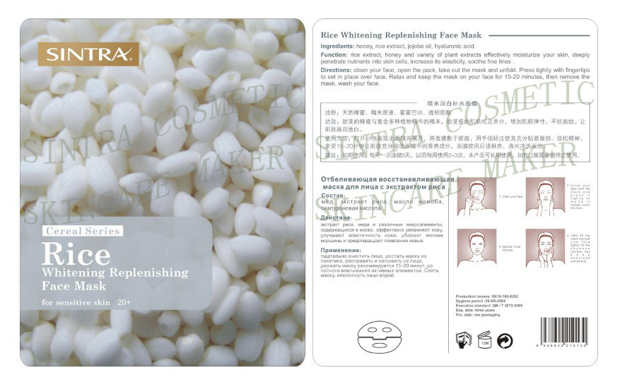 Natural Moisturizing Facial Mask , Rice Whitening Replenishing Face Mask GL-05